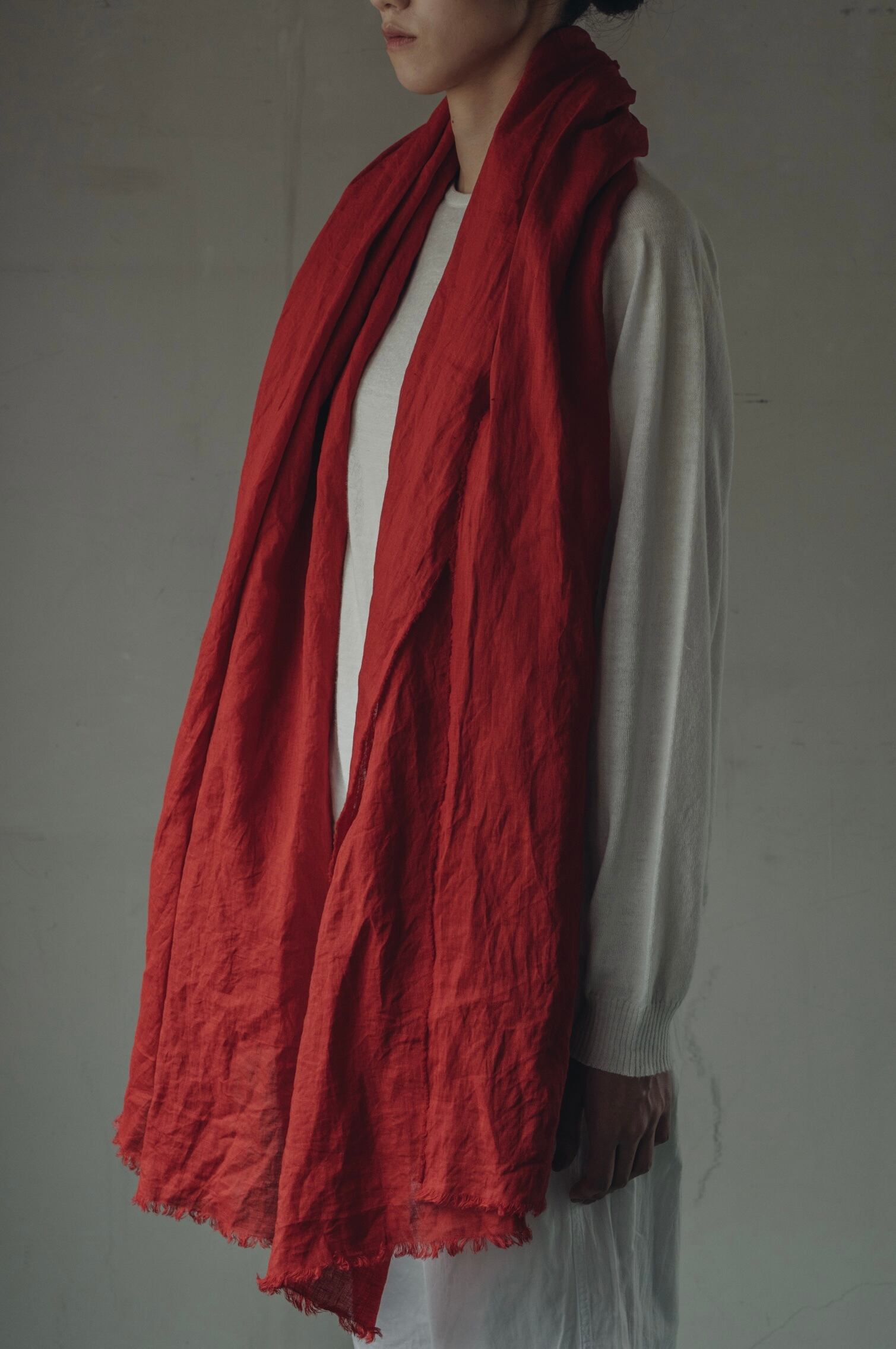 深みのある赤ですがリネンの光沢感で軽やかに感じられます。