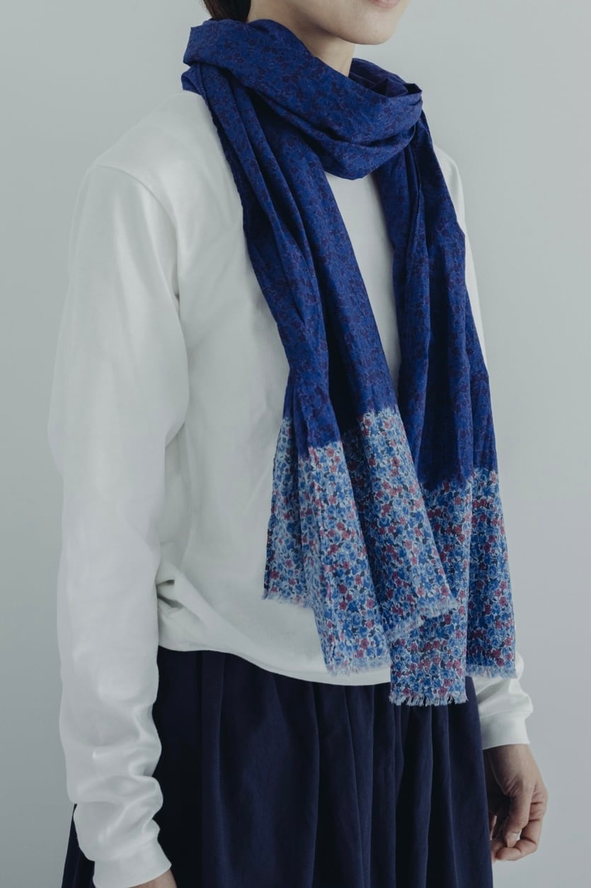 1950年代の英国リバティ柄の上から伝統工芸士の手で、絞り染めたマフラー。